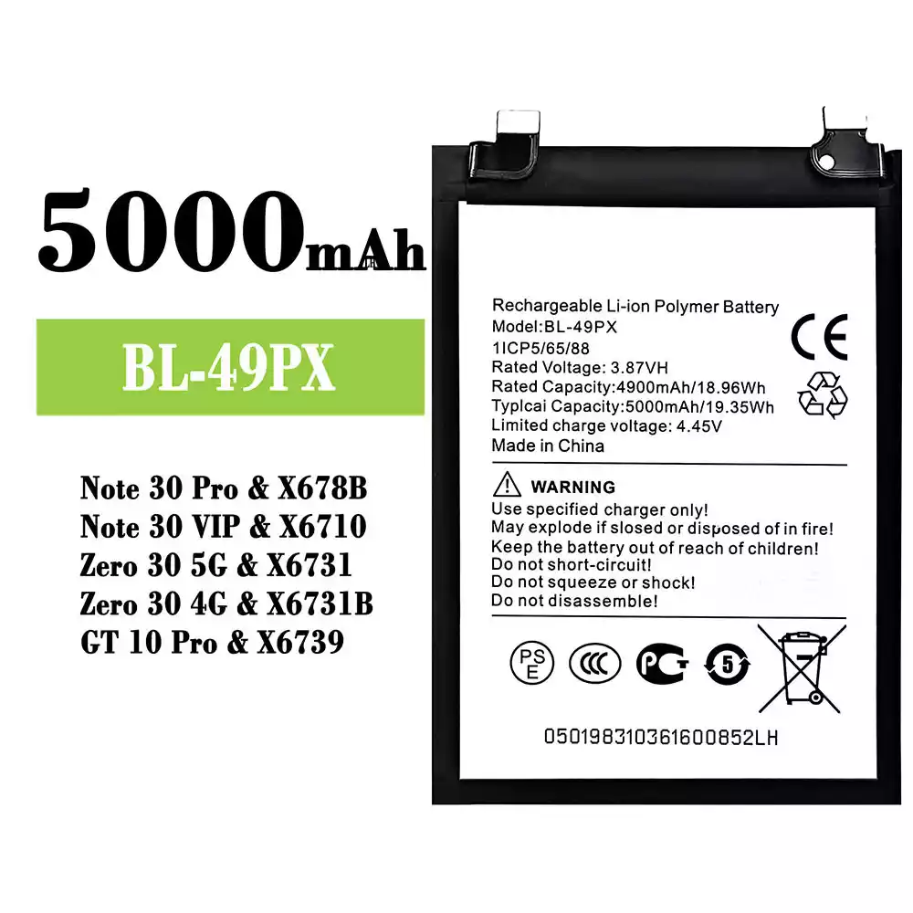 Batería BL-49PX para Infinix Note 30 Pro / X678B / Note 30 VIP / X6710 / Zero 30 5G / X6731 /Zero 30 4G / X6731B / GT 10 Pro / X6739