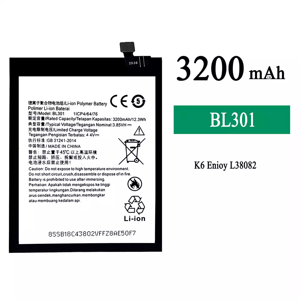 Batería BL301 para Lenovo K6 Enjoy L38082