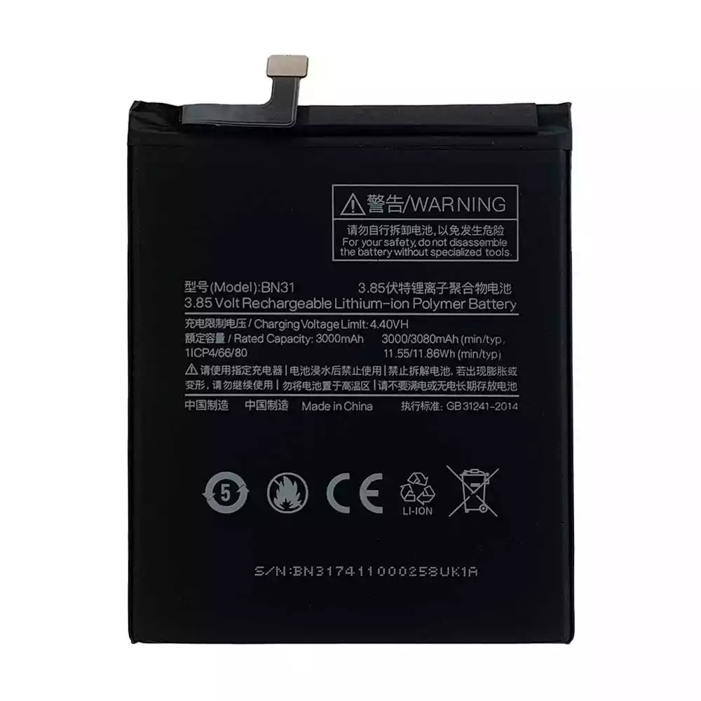Batería telefono celular BN31 para Xiaomi Redmi Y1 / Redmi Note 5A /Redmi Y1 Lite / Redmi S2 / Redmi Y2 / Redmi 5A Pro
