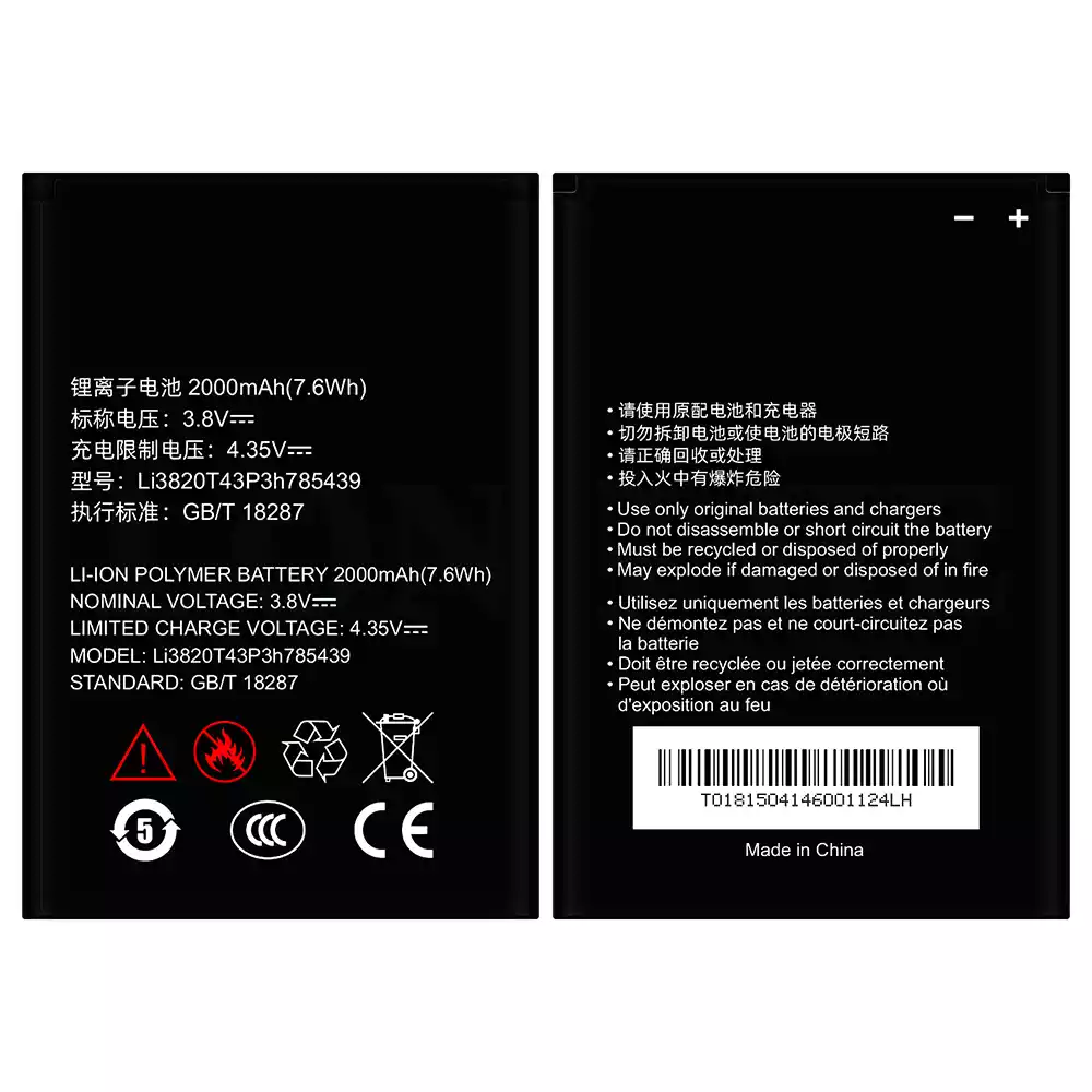 Batería telefono celular Li3820T43P3h785439 para ZTE Blade L3