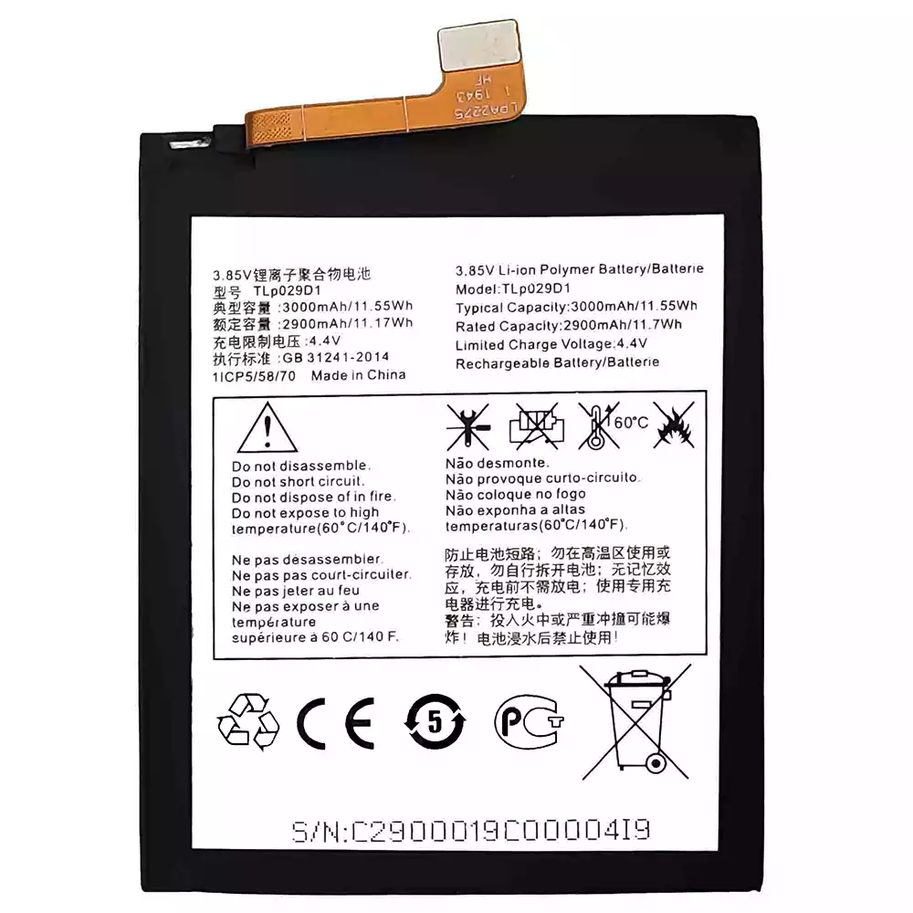 Batería telefono celular TLP029D1 para Alcatel 3 2018 / 3L 2018 / 3x 2018